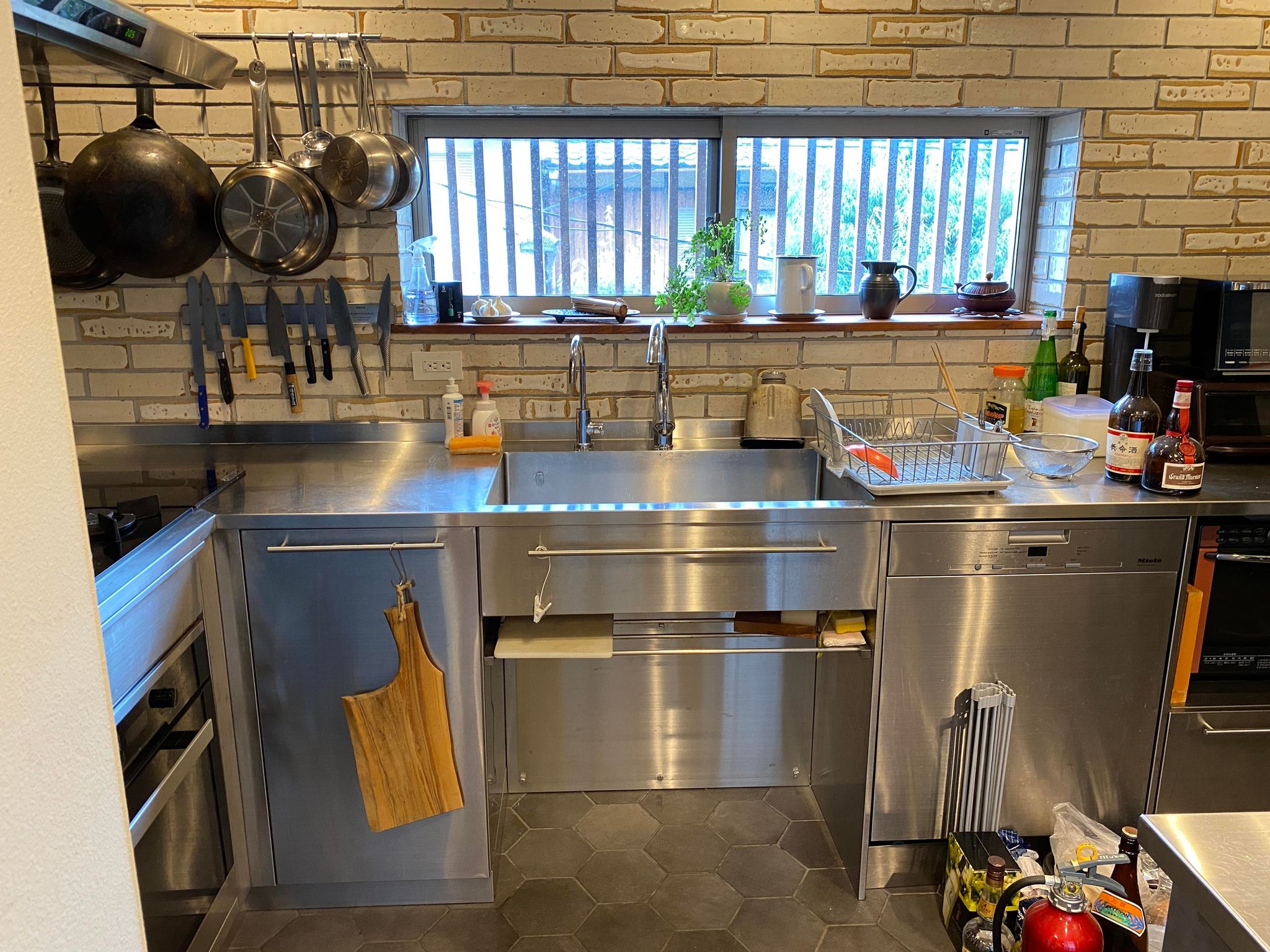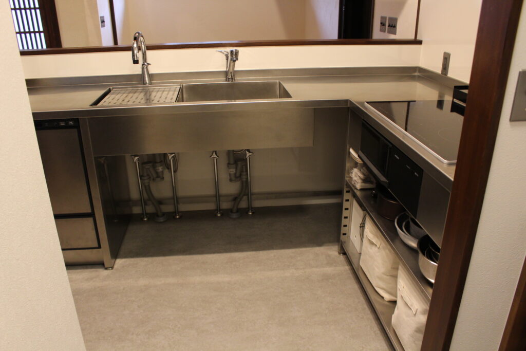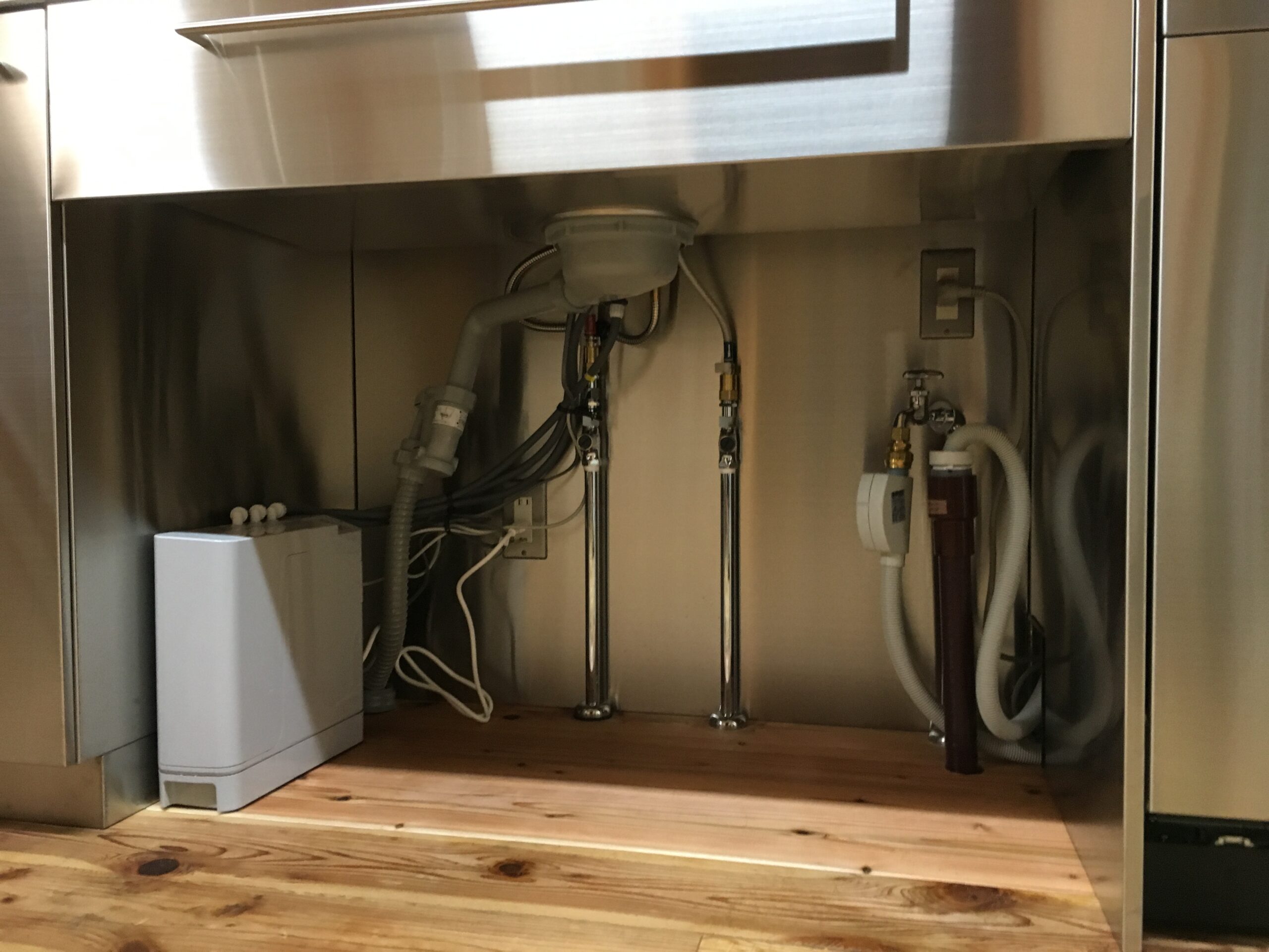 シンクが使いやすい分、配管が多くありますが目隠しするよりメンテナンス性は非常に上がります。