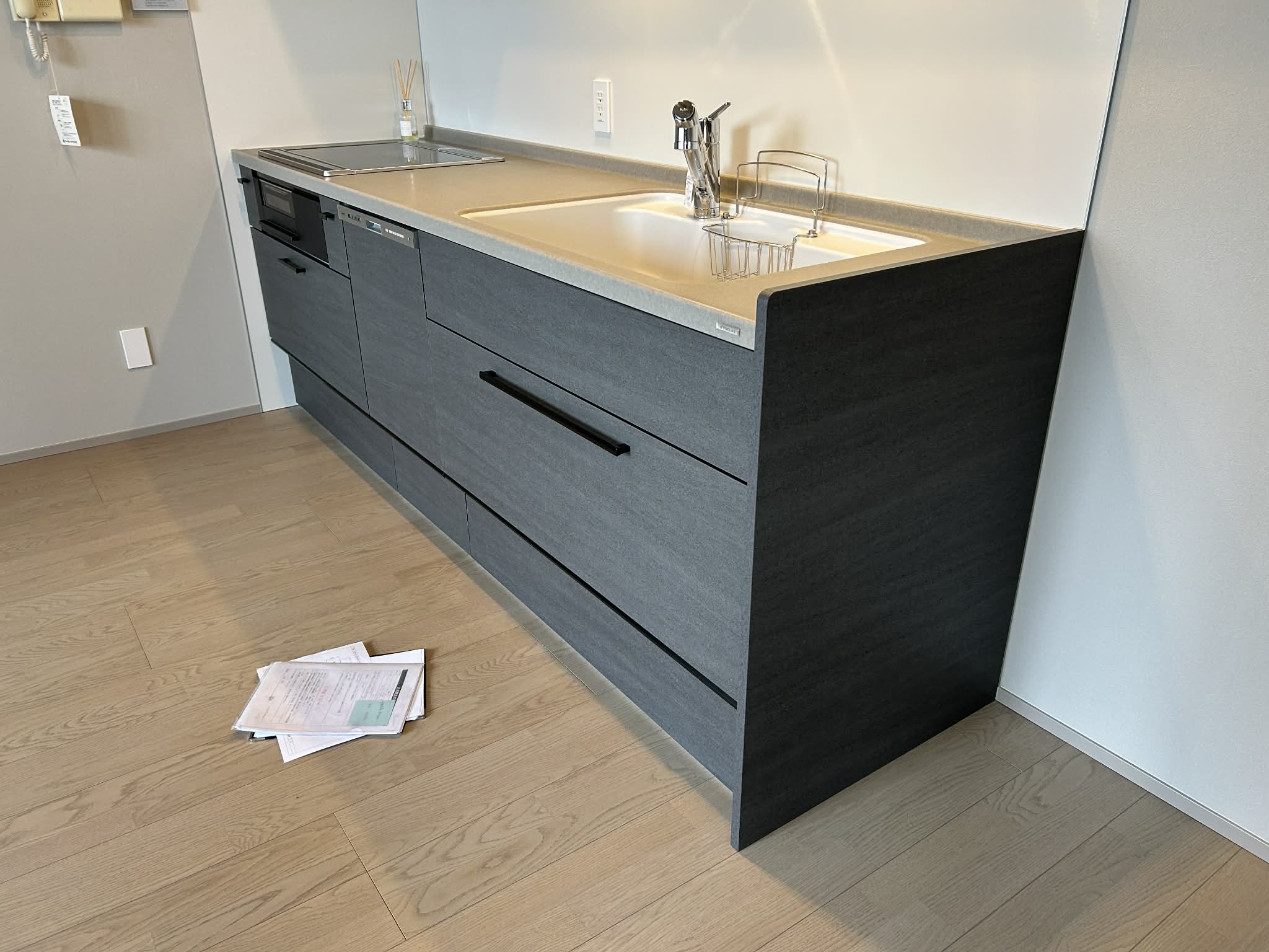中古マンション物件を購入時についていたキッチンのBOSCH製IHや食洗機、KVKタッチレス水洗の交換とキッチン高さアップがご希望でした。