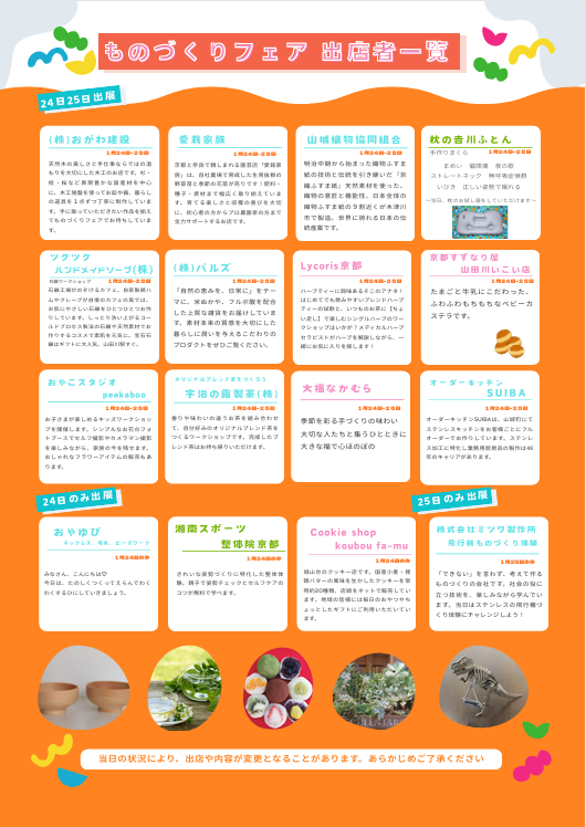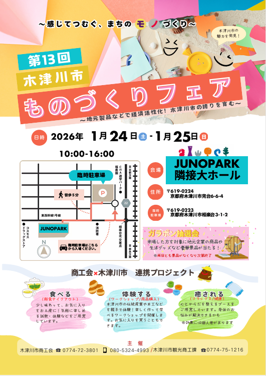 今回、木津川市商工会の主催のもと、第13回木津川市ものづくりフェアに出展します。